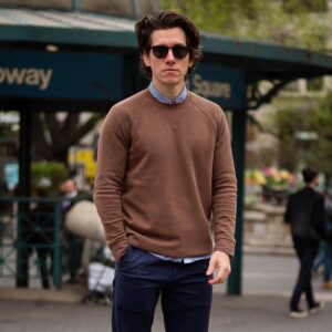 Made from the fine fibers of cashmere goats, it’s considered the most premium sweater material.
